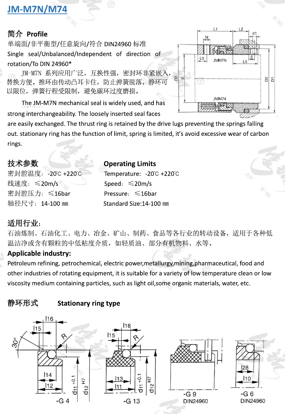 M7N系列應(yīng)用廣泛,互換性強(qiáng),密封環(huán)非緊嵌入,替換方便。推環(huán)由傳動(dòng)搭子卡住,防止彈簧脫落。靜環(huán)可以限位,彈簧行程受限制,避免碳環(huán)過(guò)度磨損。
