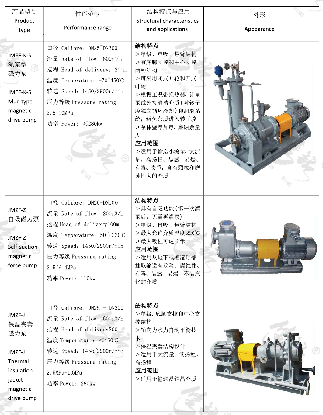 JM系列磁力驅(qū)動離心泵一種高效節(jié)能無泄漏離心泵, 在節(jié)能環(huán)保方面擁有巨大優(yōu)勢。符合API610標準API685部分標準,與國內(nèi)石化、電力等企業(yè)現(xiàn)有設(shè)備兼容,可進行完全的互換。